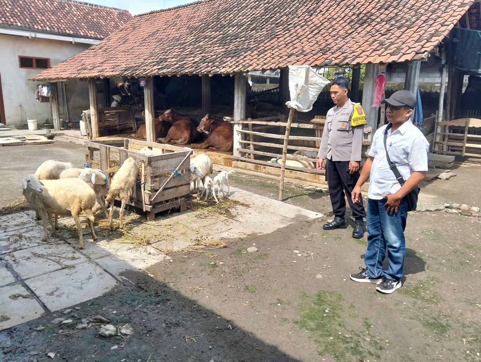 Selain pemantauan kandang, Bhabinkamtibmas juga memberikan edukasi mengenai pencegahan penyakit hewan ternak serta pengelolaan pakan dan sanitasi kandang.