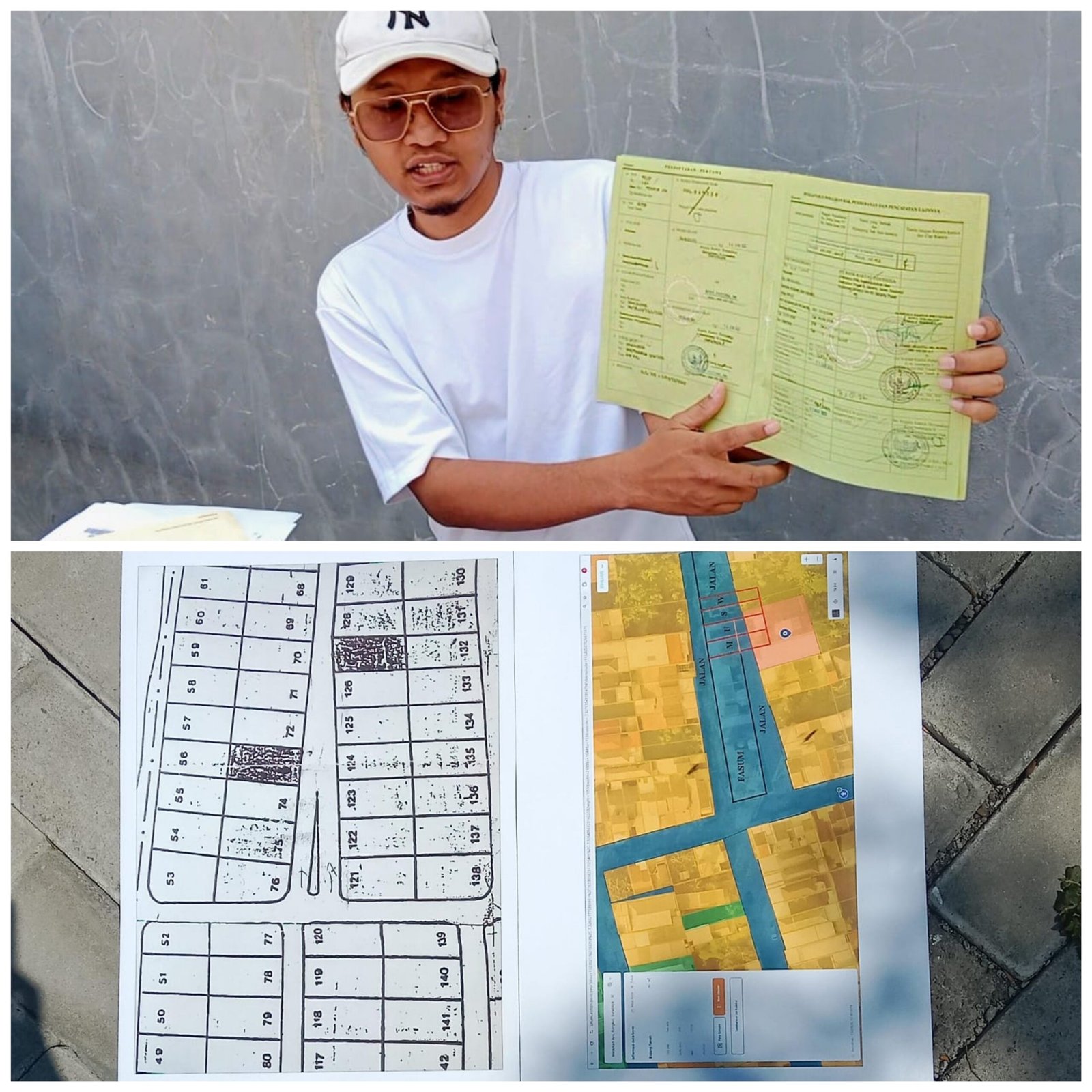 Caption : Permadi pemilik SHM menunjukkan peta kavling tanah miliknya di Jalan Tambak Medokan Ayu VI-C, RT 11 / RW 02 Kel. Medokan Ayu, Kec. Rungkut, Kota Surabaya,Sabtu (04/10/2025)