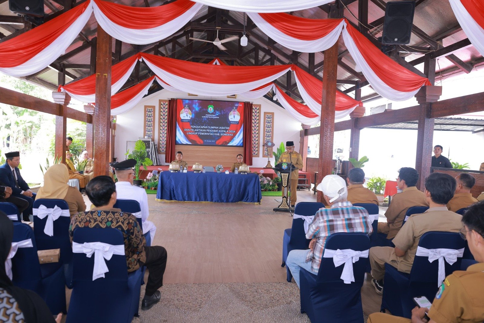 Acara berlangsung khidmat dan dihadiri sejumlah pejabat daerah, di antaranya Asisten dan Staf Ahli Bupati, Kadis Pemberdayaan Masyarakat dan Desa, Pimpinan OPD, Plt Camat Rarowatu, unsur Forkopimcam, Badan Permusyawaratan Desa (BPD), serta tokoh masyarakat setempat.