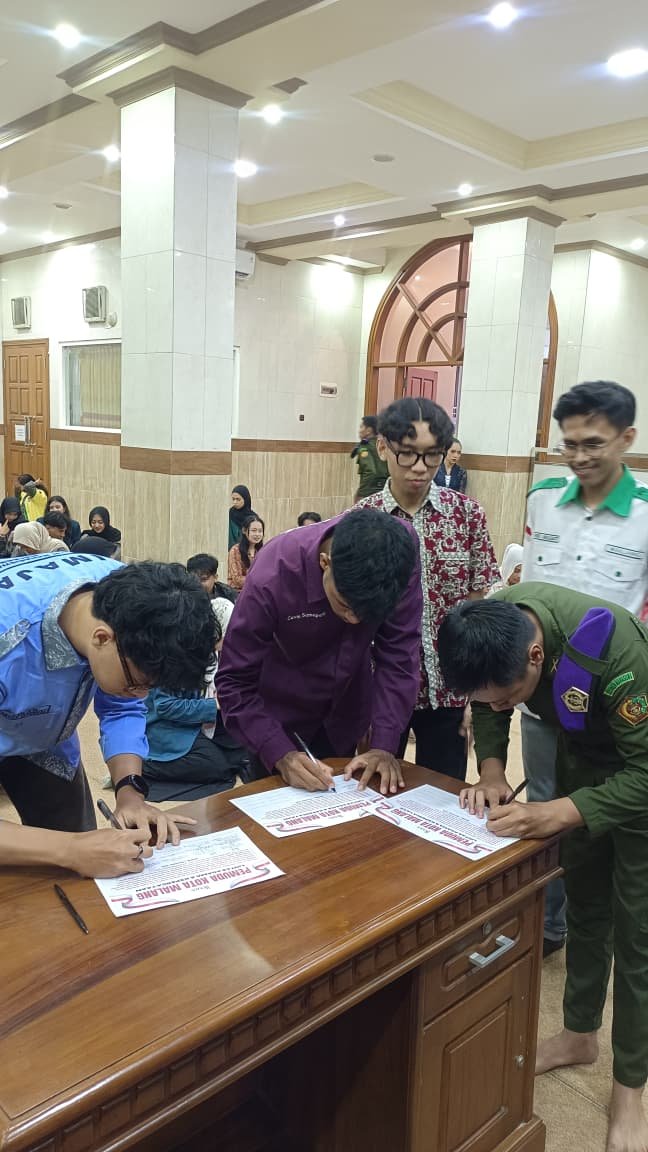 Puncak kegiatan ditandai dengan penandatanganan deklarasi bersama generasi muda Malang Raya sebagai simbol komitmen memperkuat persaudaraan lintas agama dan kepercayaan.