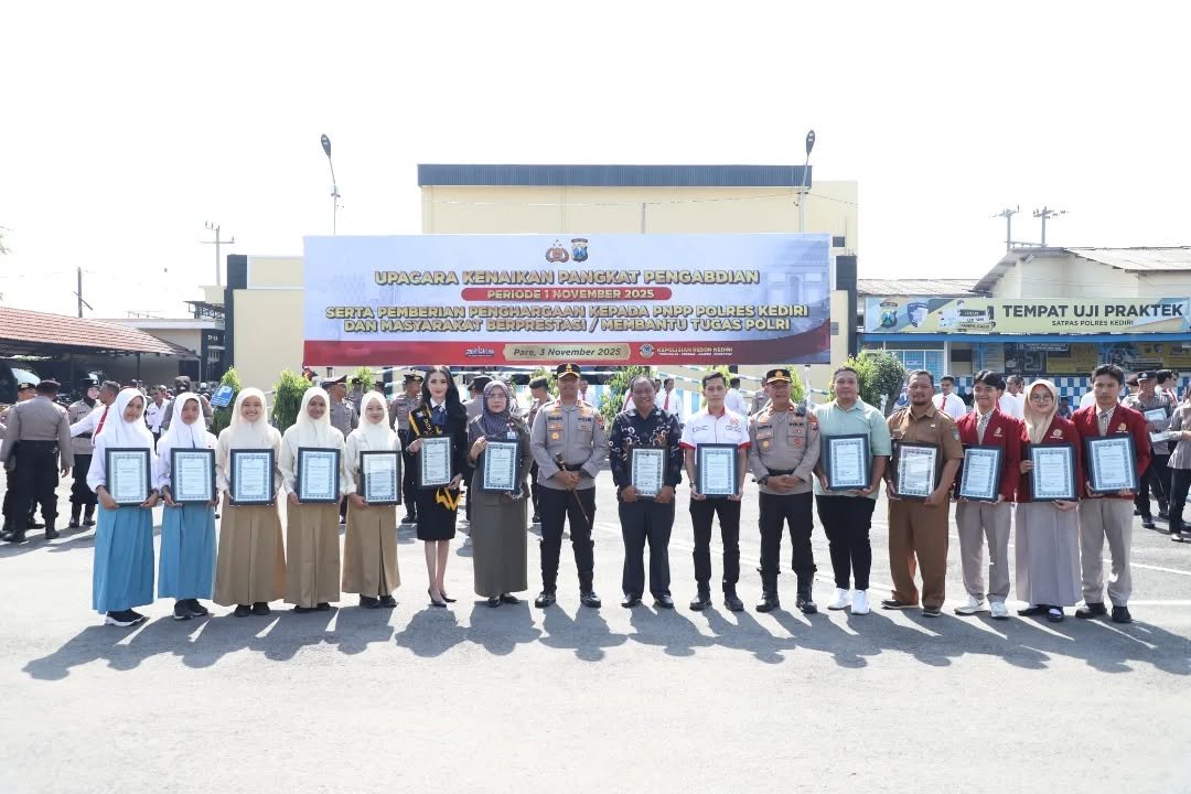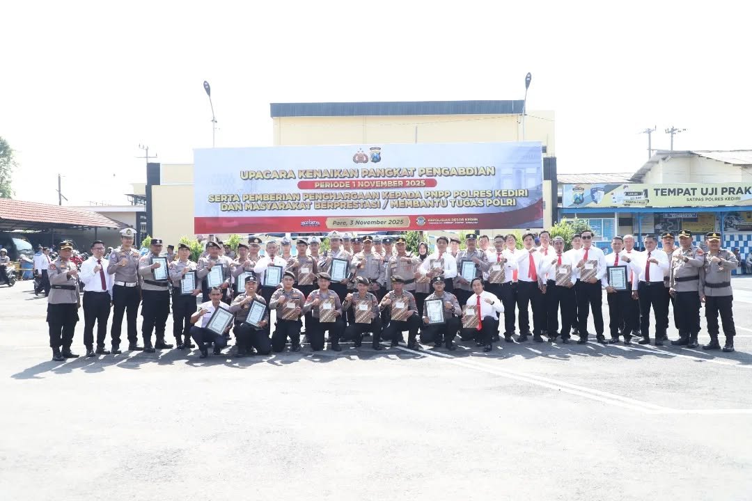 Selain itu, Polres Kediri juga memberikan 53 penghargaan periode November 2025 kepada 38 personel Polres Kediri dan 15 masyarakat yang dinilai berprestasi serta berperan aktif mendukung tugas kepolisian.