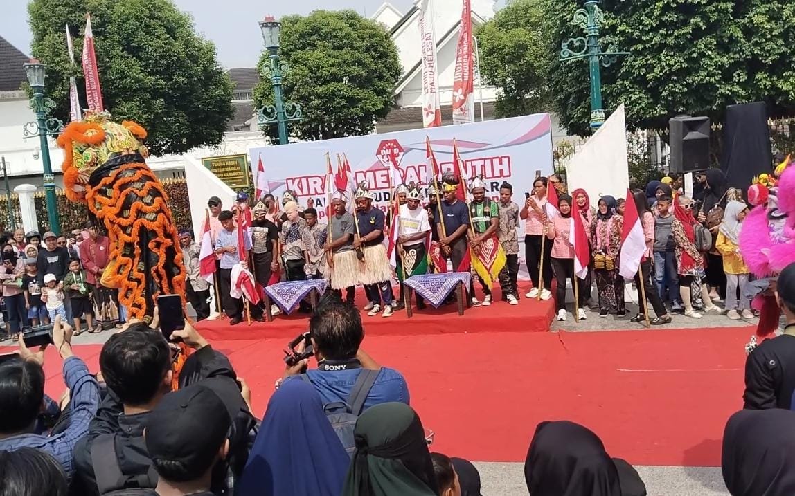 Ribuan peserta dari berbagai komunitas, mahasiswa, pelajar, serta perwakilan daerah seperti Papua, Maluku, Madura, Sulawesi Barat hingga Kalimantan Selatan meramaikan kegiatan dengan mengarak bendera Merah Putih raksasa berukuran 3 x 300 meter dan mengenakan busana adat Nusantara.