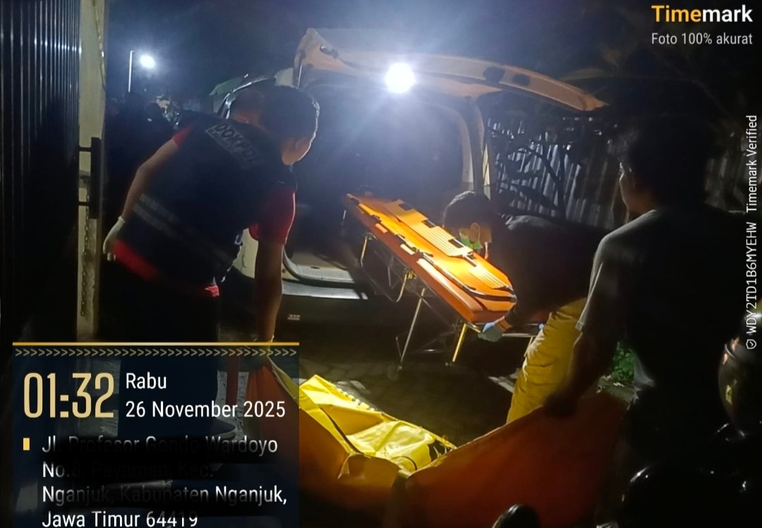 Caption : Personel Polsek Nganjuk saat evakuasi korban,Selasa (25/11/2025).