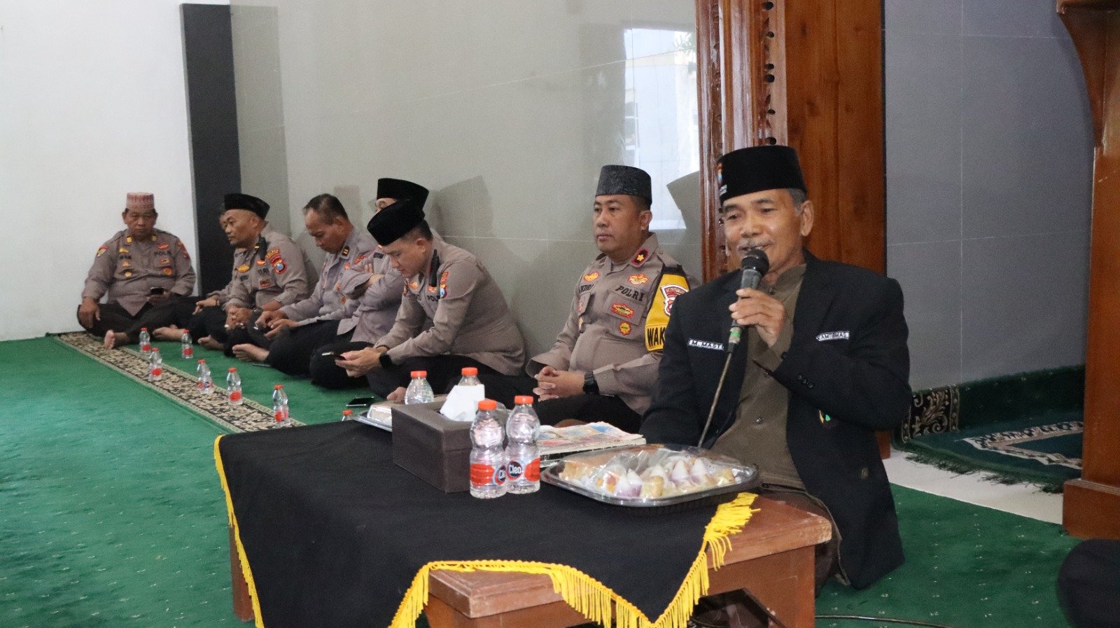 Wakapolres Nganjuk KOMPOL Andria Diana Putra, S.E., M.H., mewakili Kapolres AKBP Henri Noveri Santoso, S.H., S.I.K., M.M., menyampaikan bahwa ketepatan waktu dalam melaksanakan ibadah, khususnya salat lima waktu, merupakan cermin kedisiplinan dan komitmen diri.