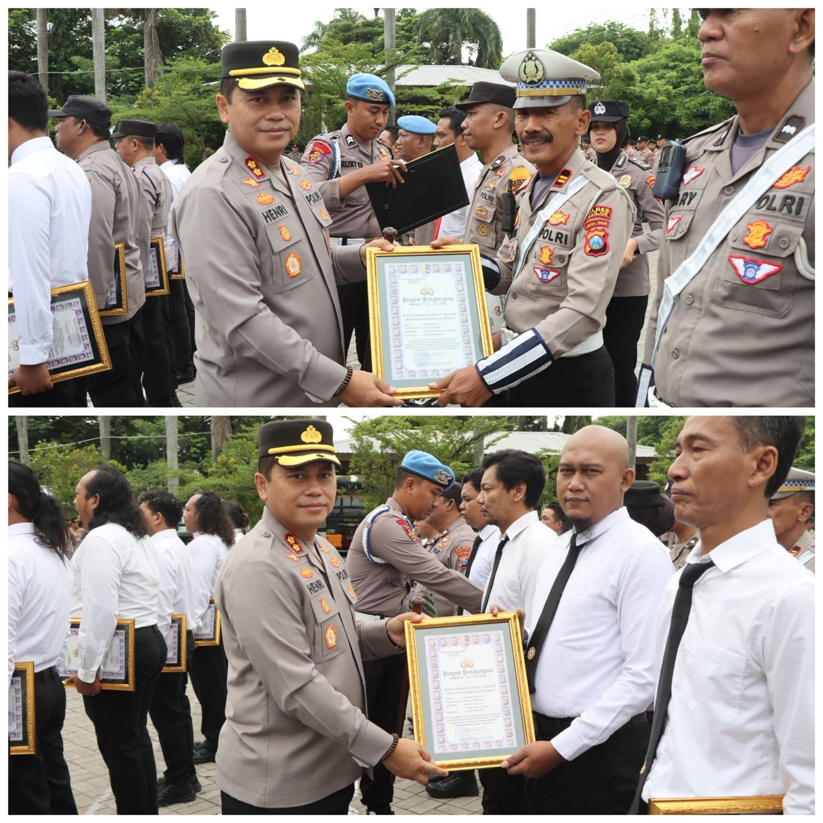 “Sebagai pimpinan, saya memberikan apresiasi kepada 31 personel yang hari ini menerima penghargaan atas dedikasi, loyalitas, dan kerja kerasnya. Prestasi ini membanggakan kesatuan dan harus menjadi motivasi bagi seluruh anggota untuk terus berkompetisi meraih keberhasilan di bidang tugasnya masing-masing,” ujar AKBP Henri.