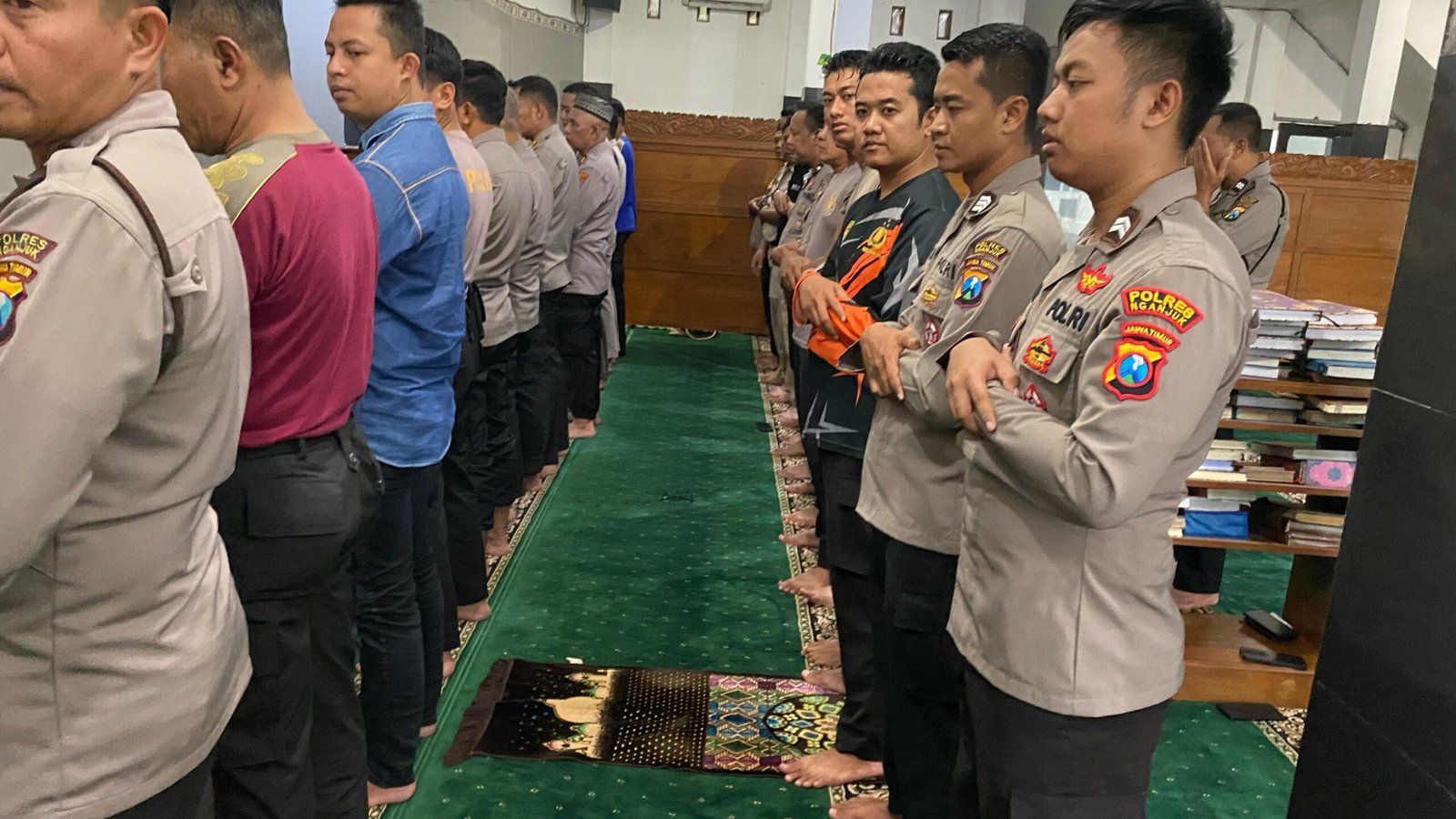 Caption : Polres Nganjuk laksanakan Shalat Gaib dan Doa Bersama Wujud Solidaritas untuk Korban Bencana di Aceh, Sumut, Sumbar, dan Erupsi Semeru di Masjid Al-Ikhlas Polres Nganjuk, Jumat (5/12/2025).