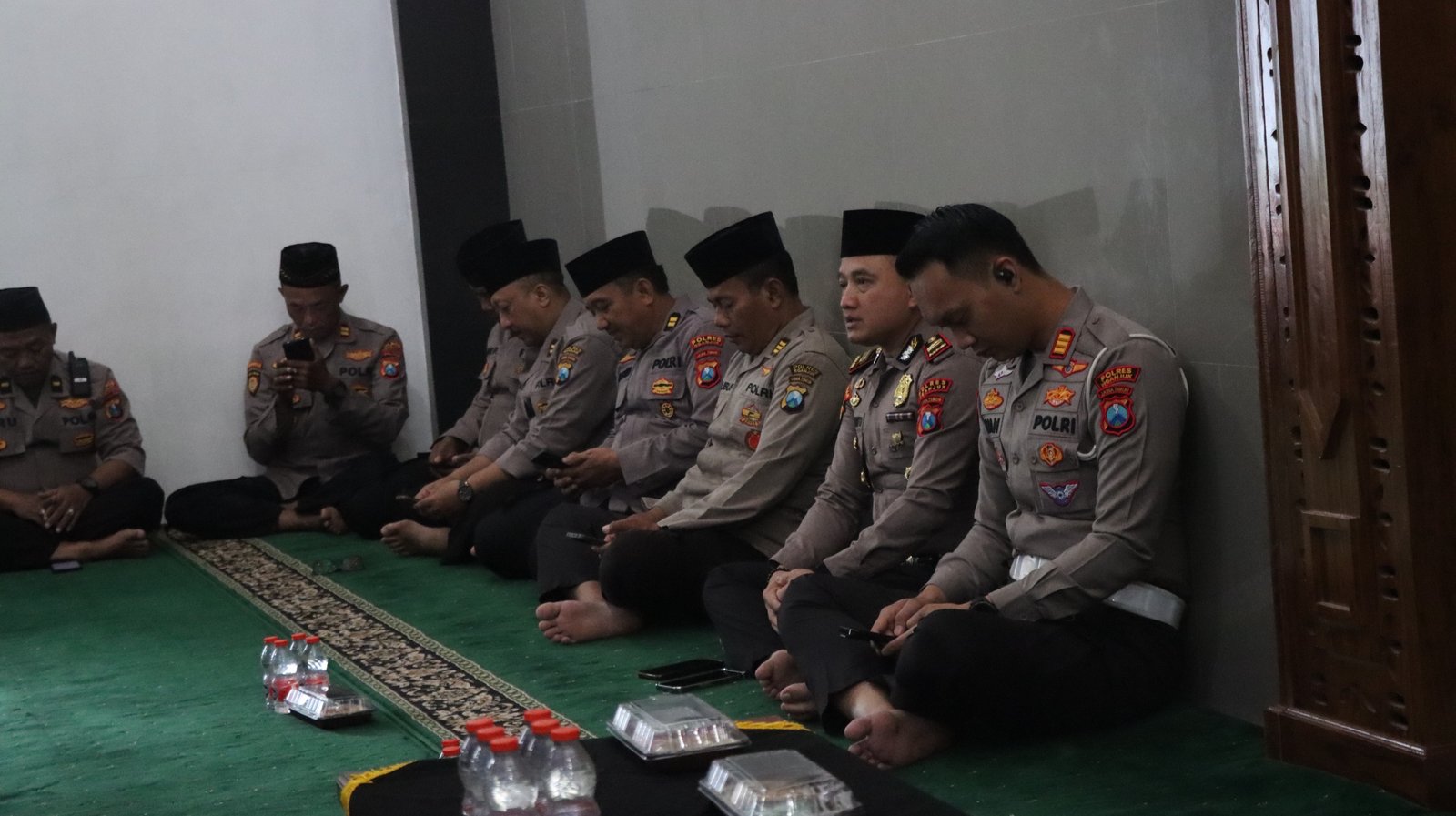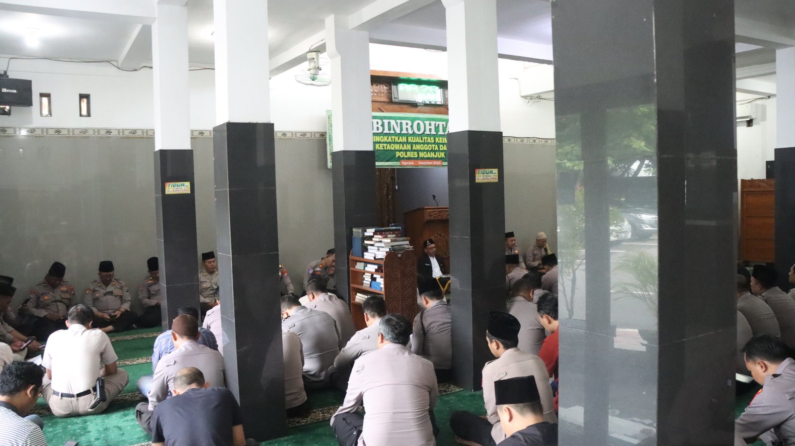 Caption : Polres Nganjuk laksanakan Binrohtal mengajak untuk meningkatkan kualitas spiritual serta etika pelayanan anggota,di Masjid Al-Ikhlas Polres Nganjuk, Kamis (11/12/2025).