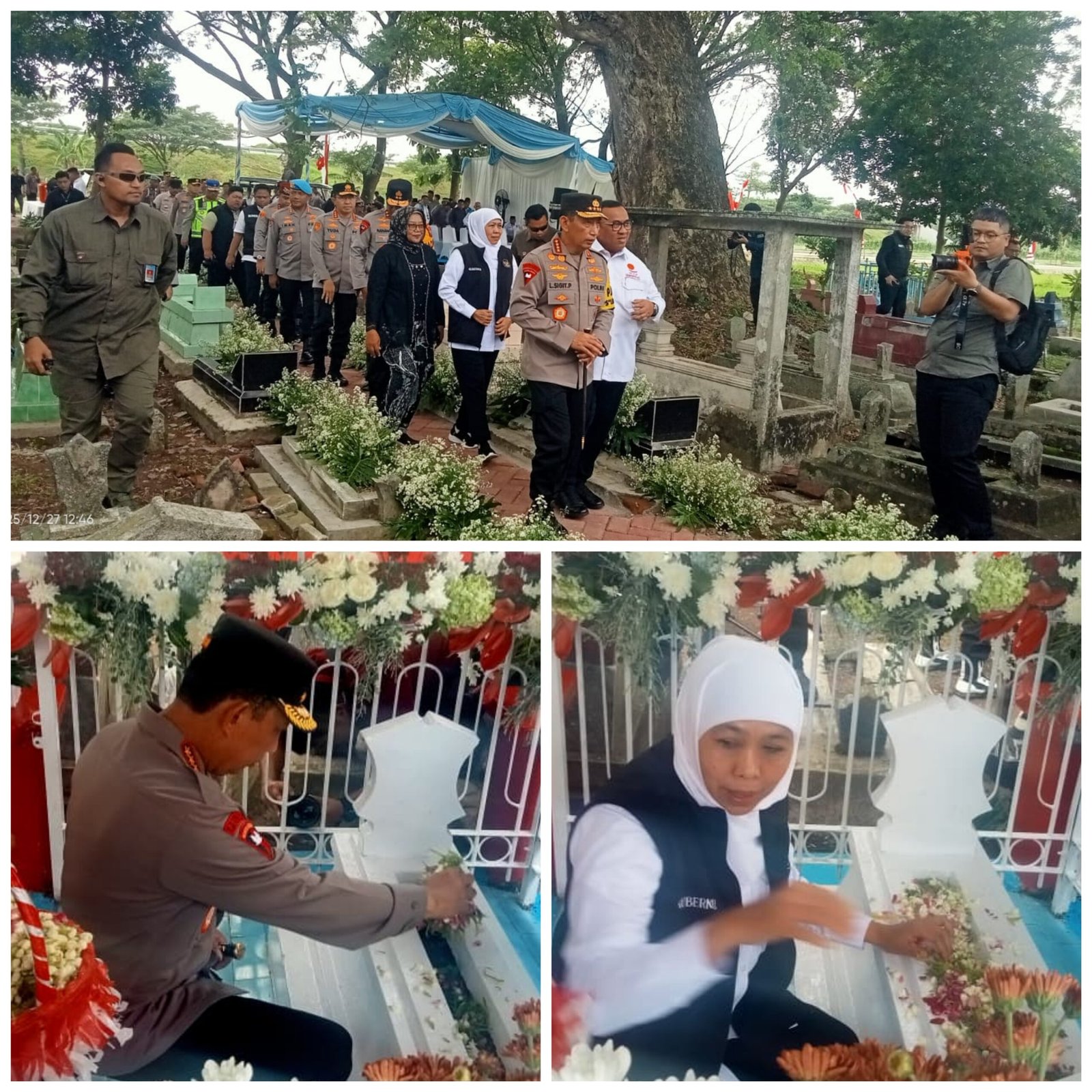 Caption : Kunker Kapolri Jendral Polisi Drs Listyo Sigit Prabowo M.si. Ke Kabupaten Nganjuk lakukan peletakan batu pertama rumah singgah/musium Pahlawan Nasional dan berziarah di Makam Ibu Marsinah,Sabtu (27/12/25).