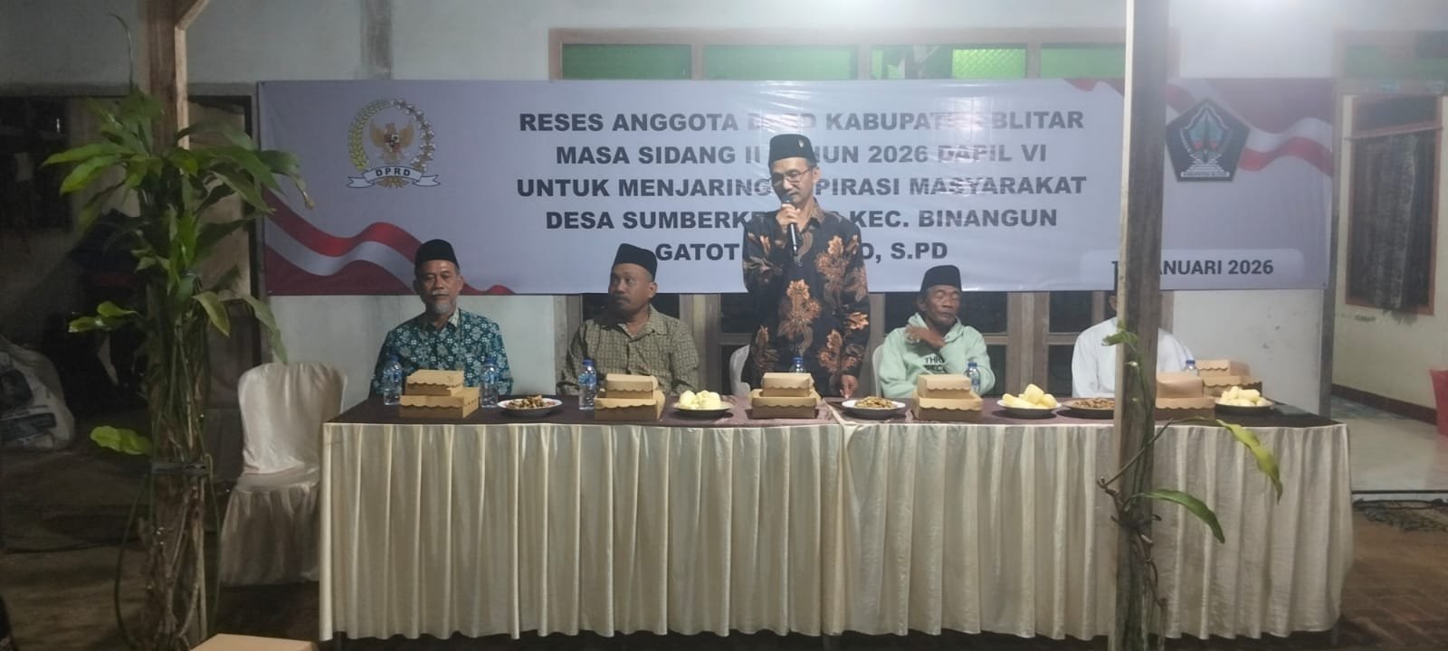BLITAR/AWA TIMUR , ASPIRANEWS.ID – Anggota Komisi II DPRD Kabupaten Blitar, Gatot Darwoto, S.Pd, menggelar Reses II Tahun 2026 di daerah pemilihan (Dapil 6) Kecamatan Binangun Desa Sumberkembar pada Minggu (18/01/2026).