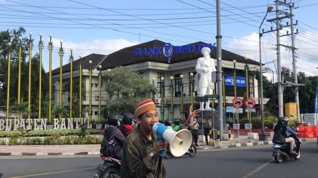 Caption : Dzul Fahmi sekertaris umum PMII Bantul saat orasi Bantul, Sabtu (09/11/25). Baca selengkapnya